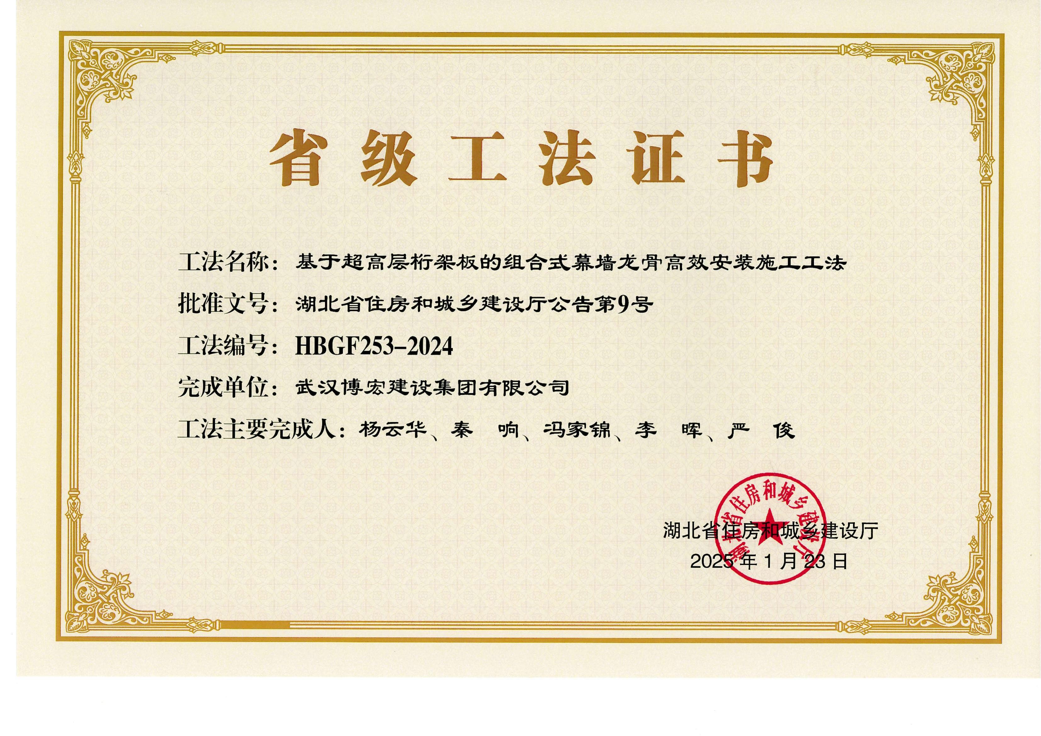 2025年湖北省住房和城鄉(xiāng)建設廳-基于超高層桁架板的組合式慕墻龍骨高效安裝施工工法