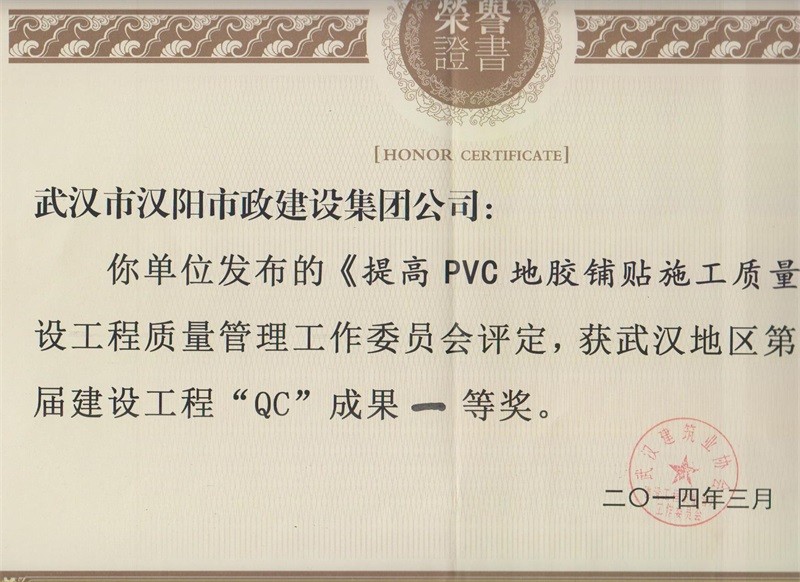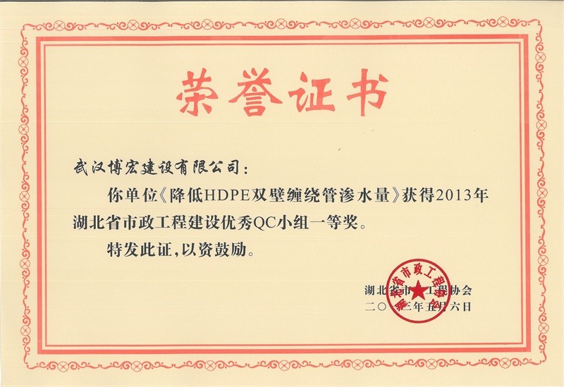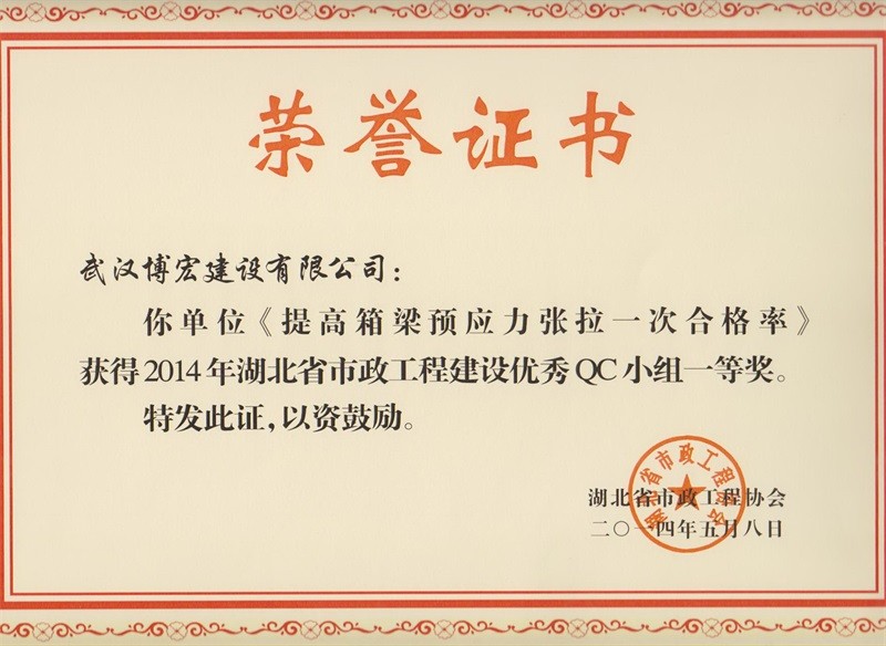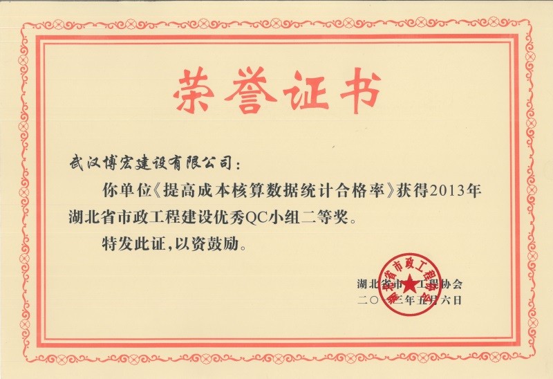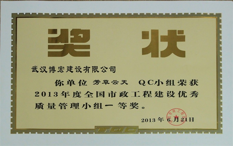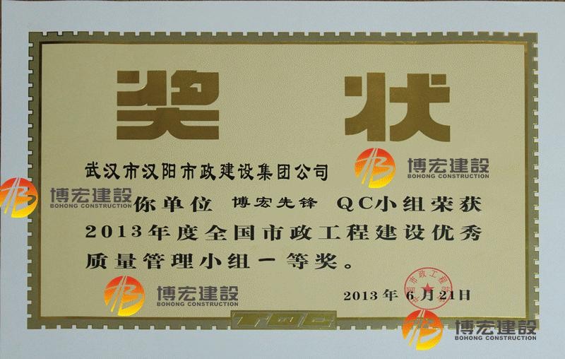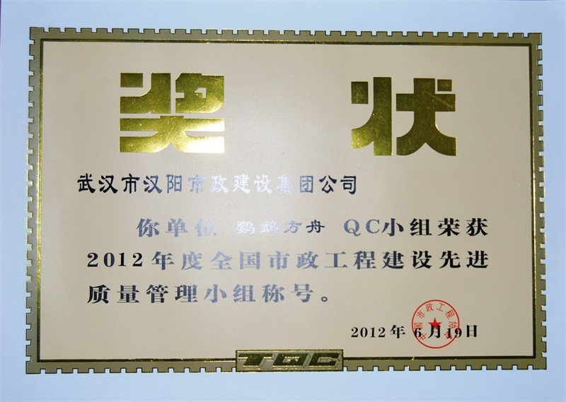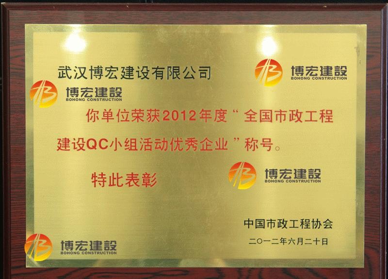2012年度全國市政工程建設QC小組活動優(yōu)秀企業(yè)