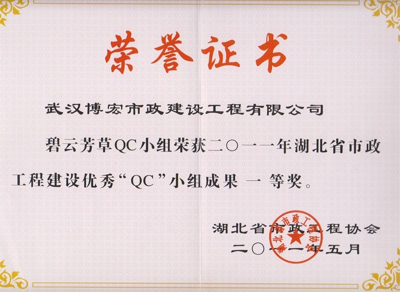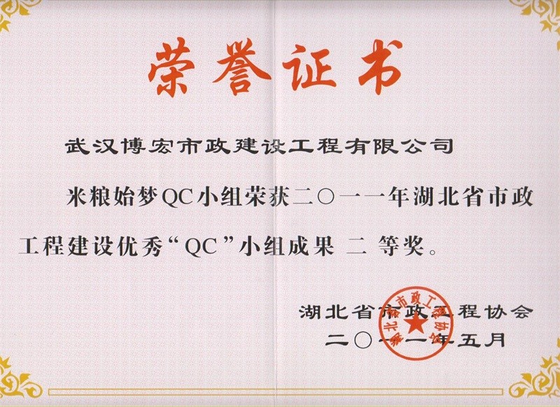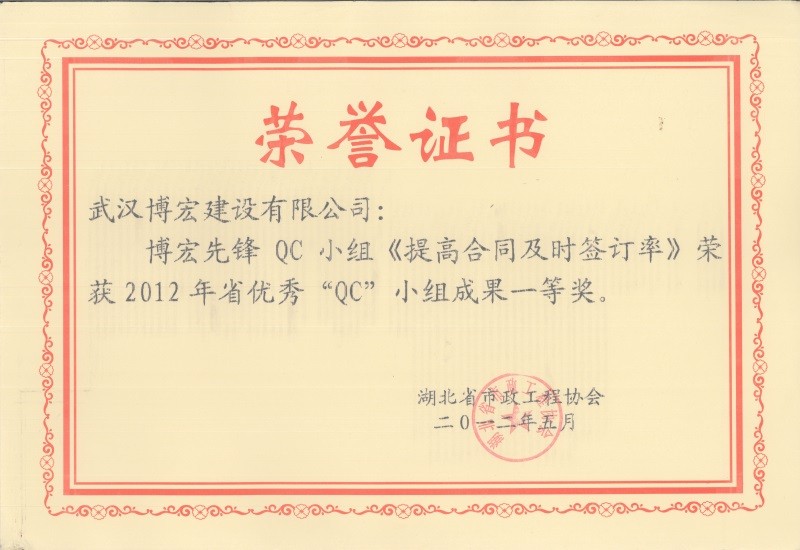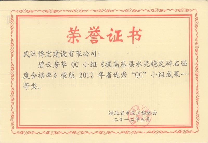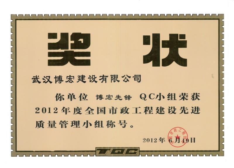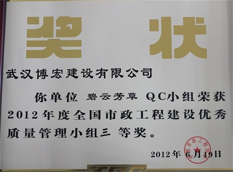 2012年度全國市政工程建設(shè)先進質(zhì)量管理小組
