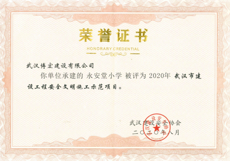 2020年上半年武漢市建設(shè)工程安全文明施工示范項目(永安堂小學(xué))