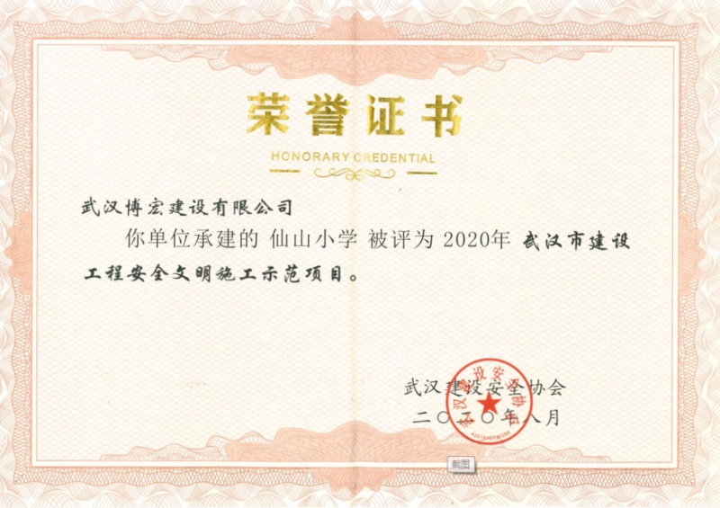 2020年上半年武漢市建設(shè)工程安全文明施工示范項目(仙山小學(xué))