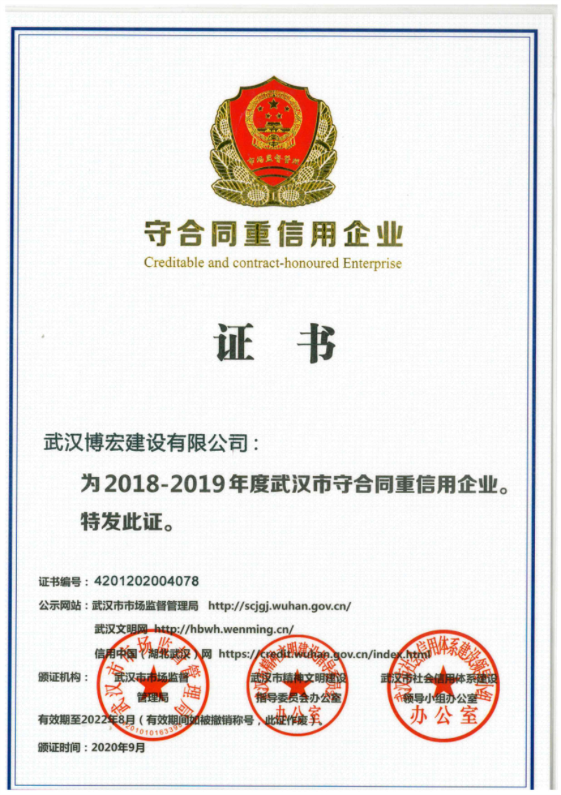 十五屆(2018-2019年度)湖北省守合同重信用企業(yè)