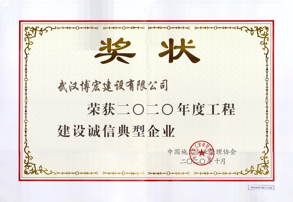 武漢建筑業(yè)信用企業(yè)等級(jí)證書