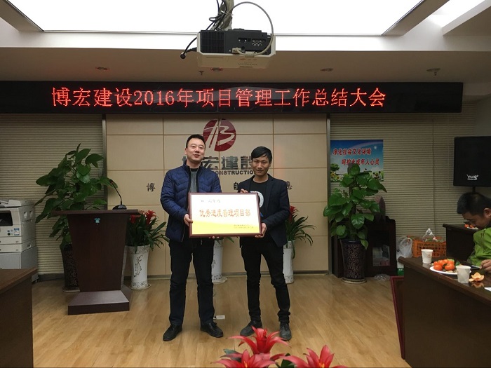 在表彰環(huán)節(jié),公司為在2016年度成本、進度、質量、安全及技術等方面表現(xiàn)突出的先進集體和個人頒獎。會上共有4個項目部受到表彰收獲了五項大獎,21名員工授予了“優(yōu)秀員工”稱號,在熱烈的掌聲和歡呼聲中,博宏建設支部領導為他們頒發(fā)榮譽證書和獎牌,并合影留念。