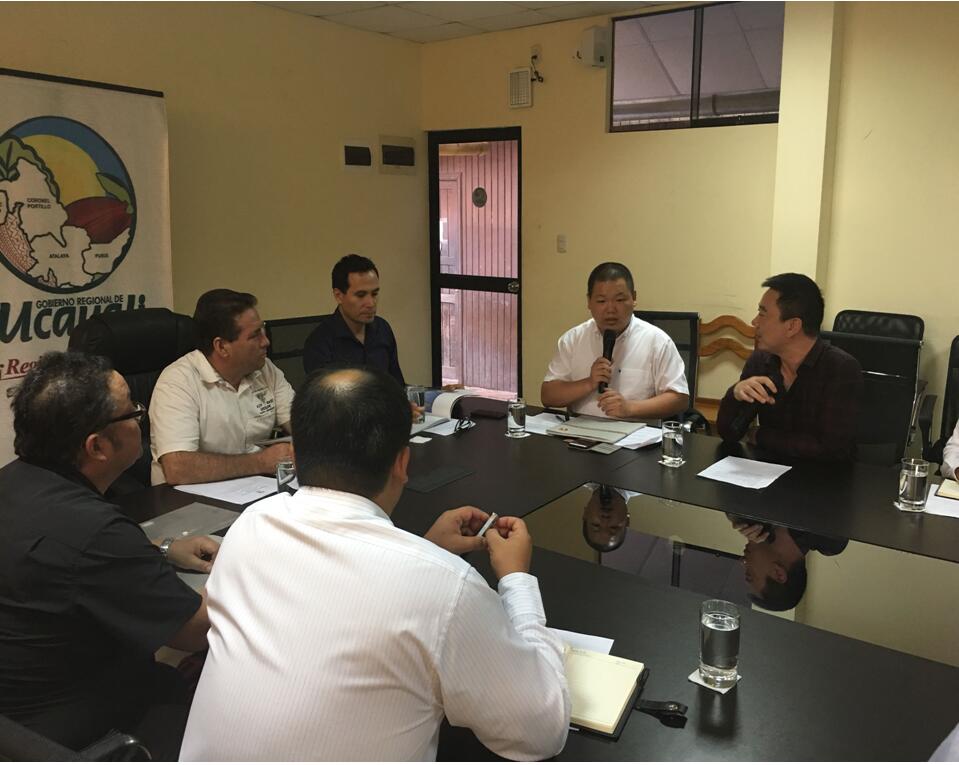 考察團(tuán)與Ucayali大區(qū)區(qū)長Manuel Gambini Rupay先生(左二)會面