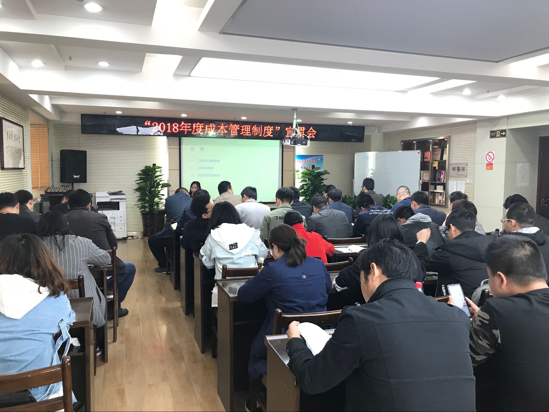 4月14日上午,“2018年度成本管理制度”宣貫會暨“施工合同風險防范”法律專題講座在公司大會議室順利召開。博宏建設(shè)總經(jīng)理助理李艷娥、合約審計部、法律事務(wù)部、項目經(jīng)理、施工主管、預算員及琴臺綠化公司等相關(guān)人員約50余人參加了本次會議。