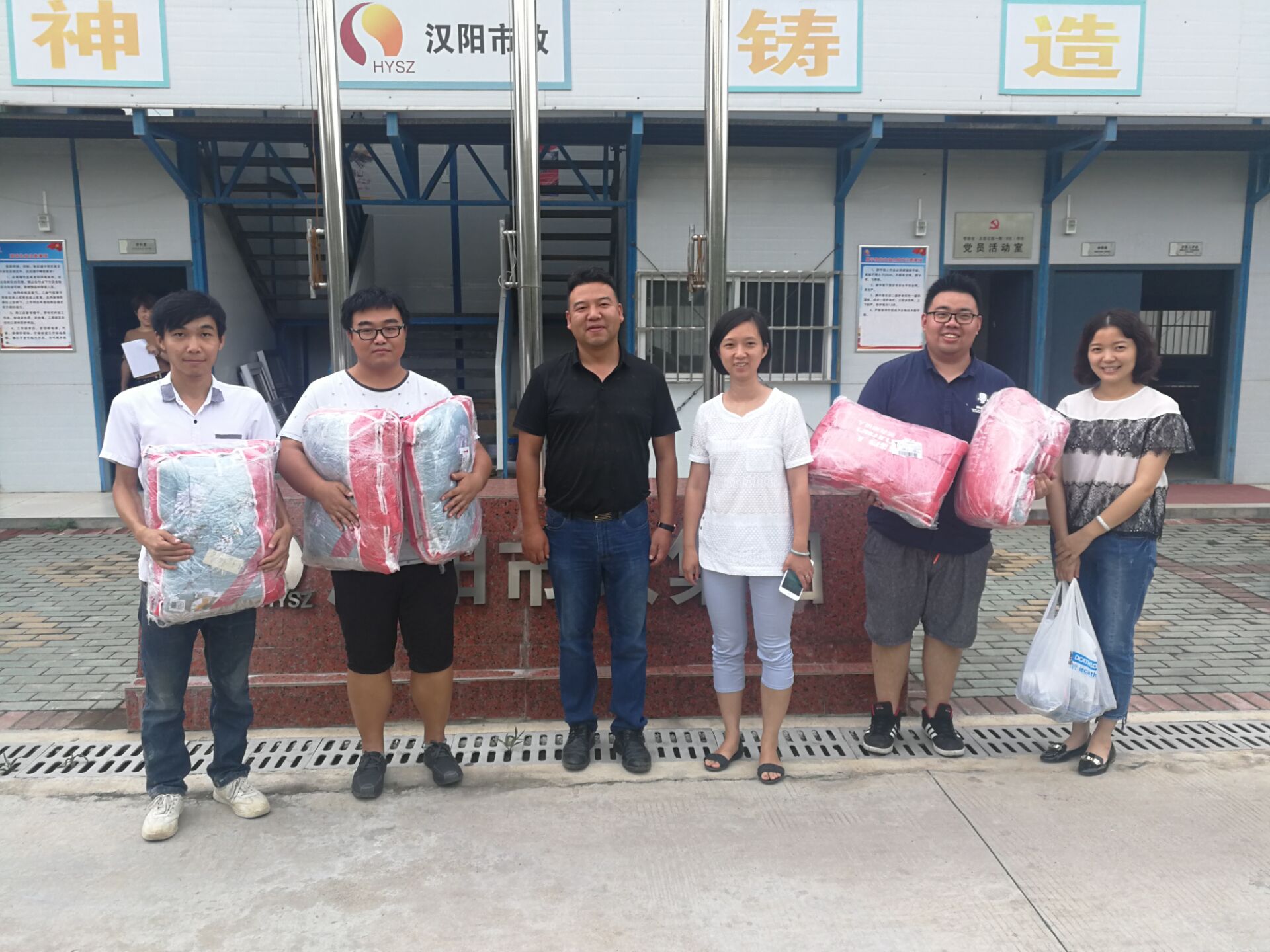 7月12日,博宏建設(shè)支部副書記郭一清、工會主席李俊等來到黃石正信花園項目,為職工送去關(guān)心與慰問,并根據(jù)項目一線施工需求,為每位職工準(zhǔn)備了防曬服一套及空調(diào)被。