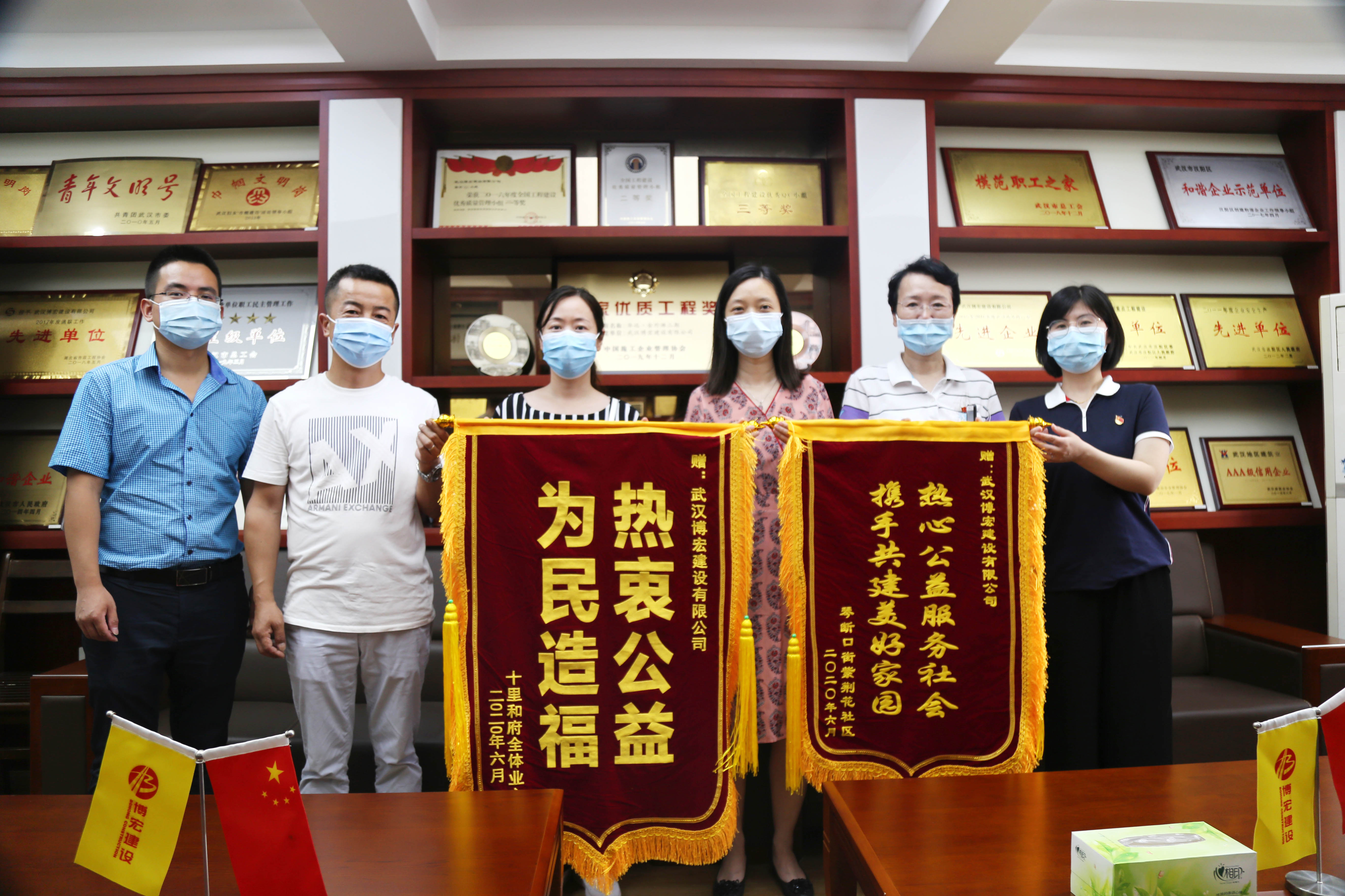?? 69日上午,漢陽區(qū)委宣傳部代表和漢陽區(qū)紫荊花社區(qū)、十里和府小區(qū)物業(yè)代表結(jié)伴而來,為博宏建設(shè)送來兩面錦旗,感謝博宏建設(shè)在改善社區(qū)工作環(huán)境,服務(wù)社區(qū)公益事業(yè)中做出的努力。據(jù)悉,十里和府小區(qū)一號(hào)樓一樓裝修老舊,地面不平,居民出行不便,博宏建設(shè)裝飾裝修項(xiàng)目部在周邊施工時(shí),接到相關(guān)指示,先后派出6人歷時(shí)6天,一并對(duì)該區(qū)域近300平米進(jìn)行了地磚更換,裝修效果得到了居民和社區(qū)的高度認(rèn)可。
