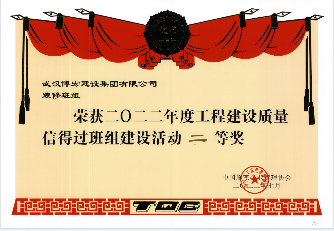 近日,博宏建設(shè)集團(tuán)裝修分公司榮獲中國(guó)施工企業(yè)管理協(xié)會(huì)頒發(fā)的2022年度工程建設(shè)質(zhì)量“信得過(guò)班組”建設(shè)活動(dòng)“二等獎(jiǎng)”以品質(zhì)工程,打造博宏品牌。
