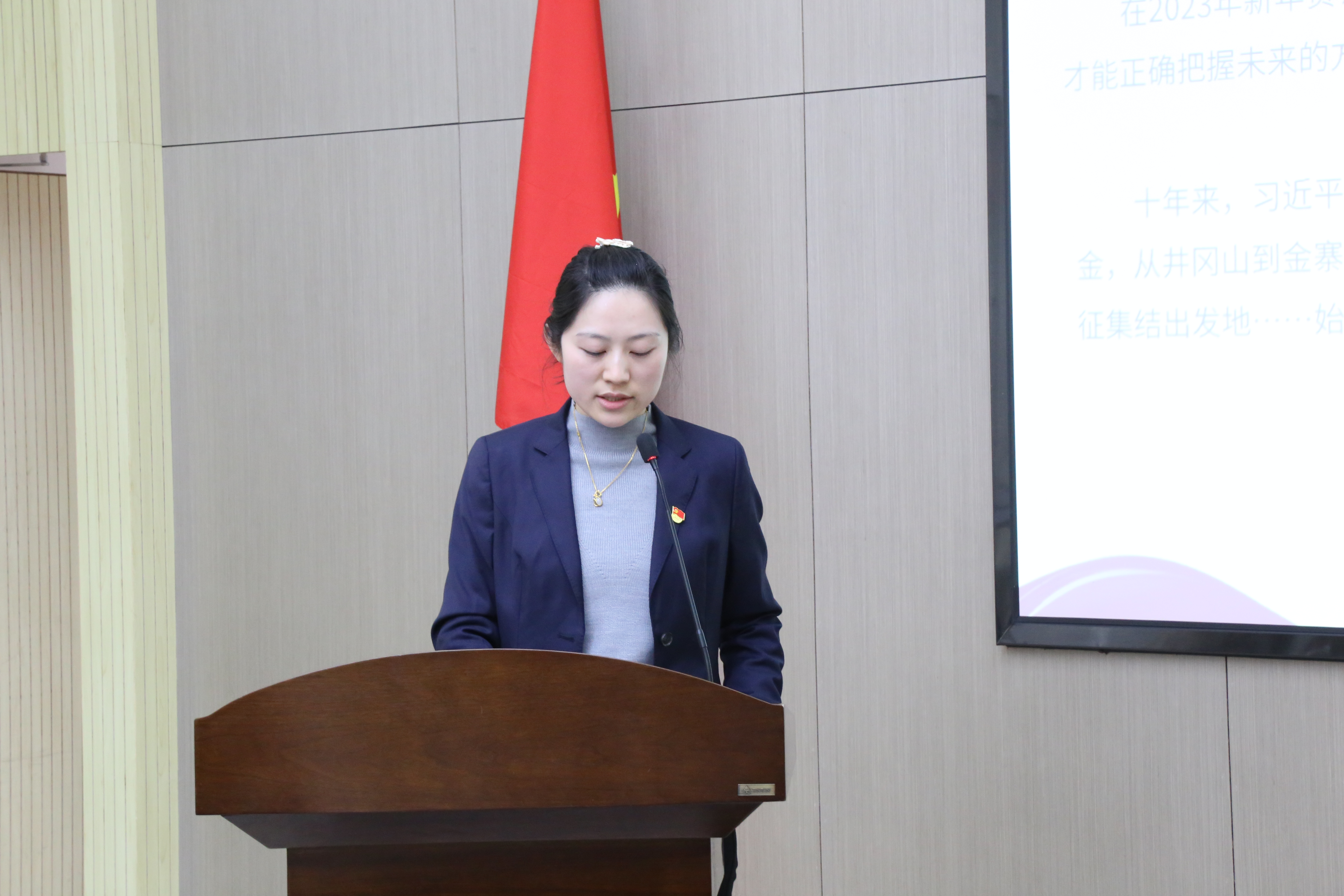 漢陽市政集團機關第一黨支部黨員洪珂為帶領全體黨員學習習近平總書記重要講話——2023年新年賀詞。講話精神也讓全體黨員更加深刻地認識到今天的中國是夢想接連現實的中國、是充滿生機活力的中國、是賡續(xù)民族精神的中國、是緊密聯(lián)系世界的中國。明天的中國,力量源于團結,全體黨員應當厚植家國情懷、涵養(yǎng)進取品格,以奮斗姿態(tài)激揚青春,不負時代,不負華年。