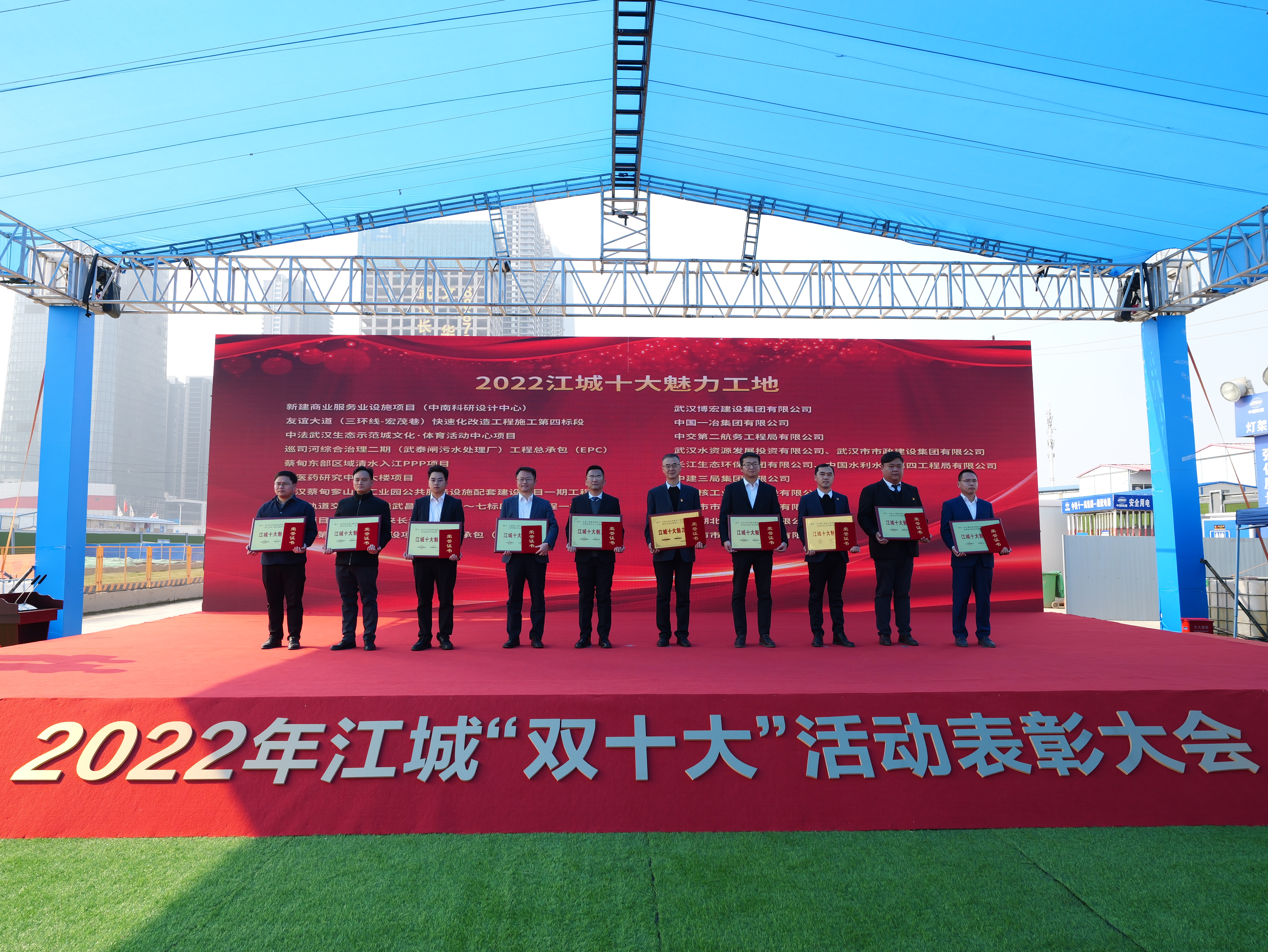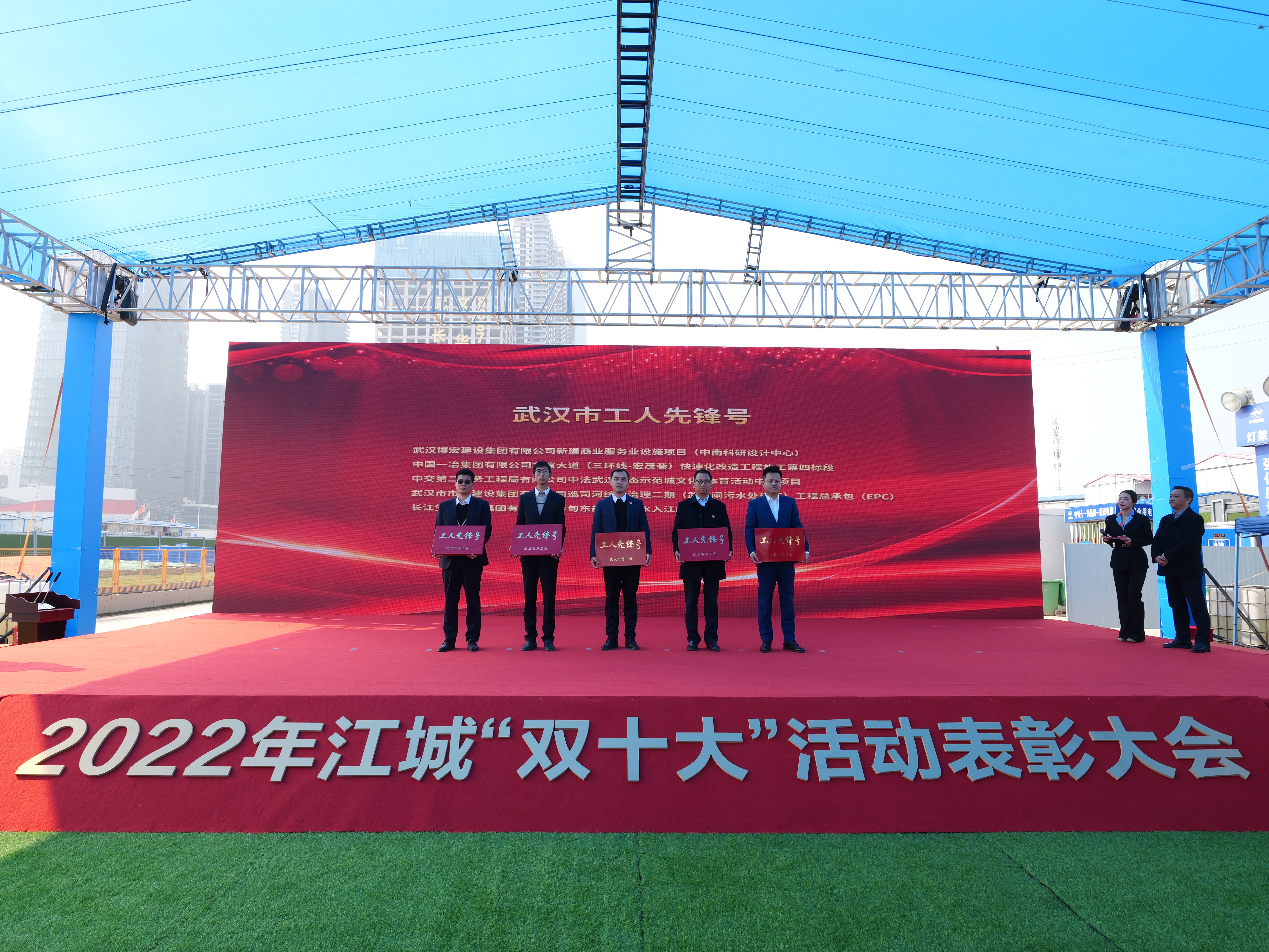 2月24日上午,2022年江城“雙十大”工地表彰典禮順利舉行,由博宏建設集團承建的中南科研設計中心建設項目喜獲“2022江城十大魅力工地”,并被武漢市總工會授予“武漢市工人先鋒號”榮譽獎牌。
