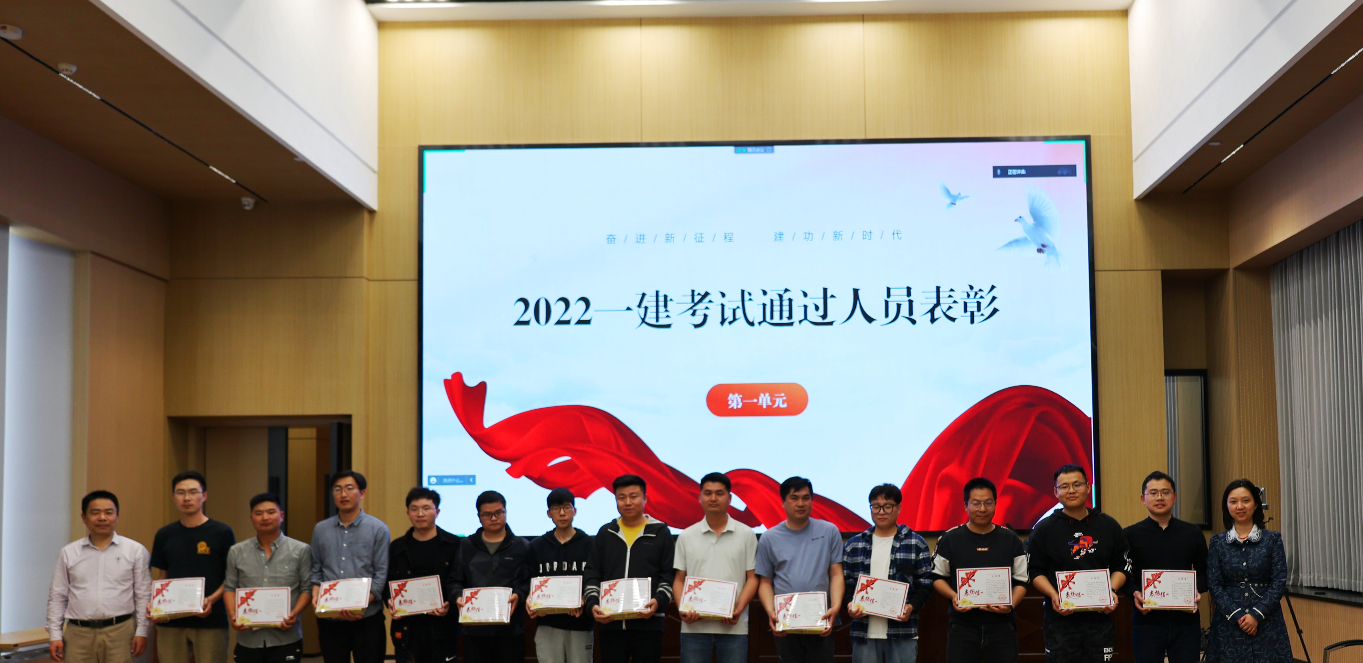 黨委副書記郭一清和本次合作培訓(xùn)機構(gòu)講師——鑫凌眾教育資深名師甘恢義老師為2022年度16名通過一建考試的學(xué)員頒發(fā)榮譽獎品和表揚信。