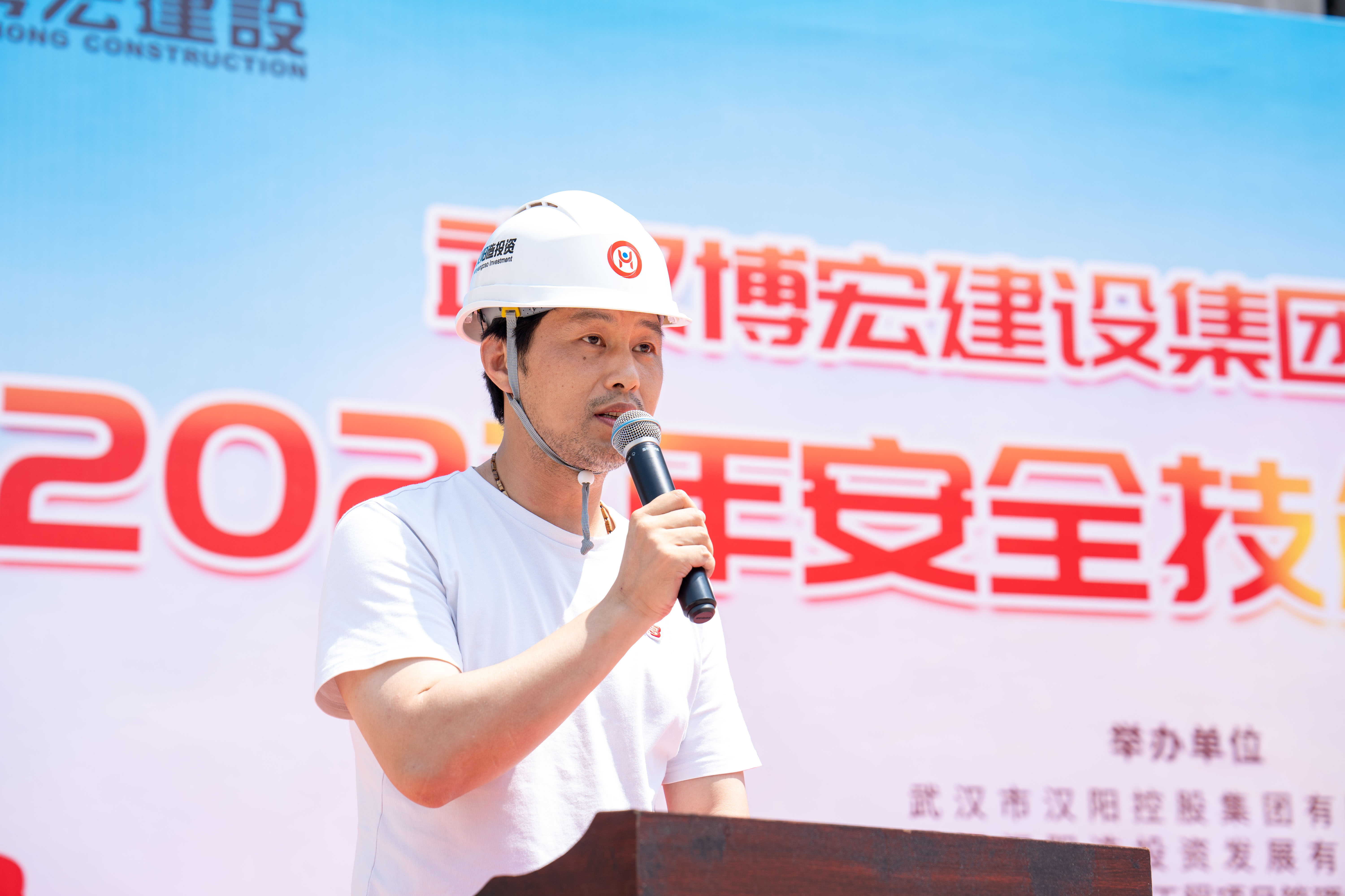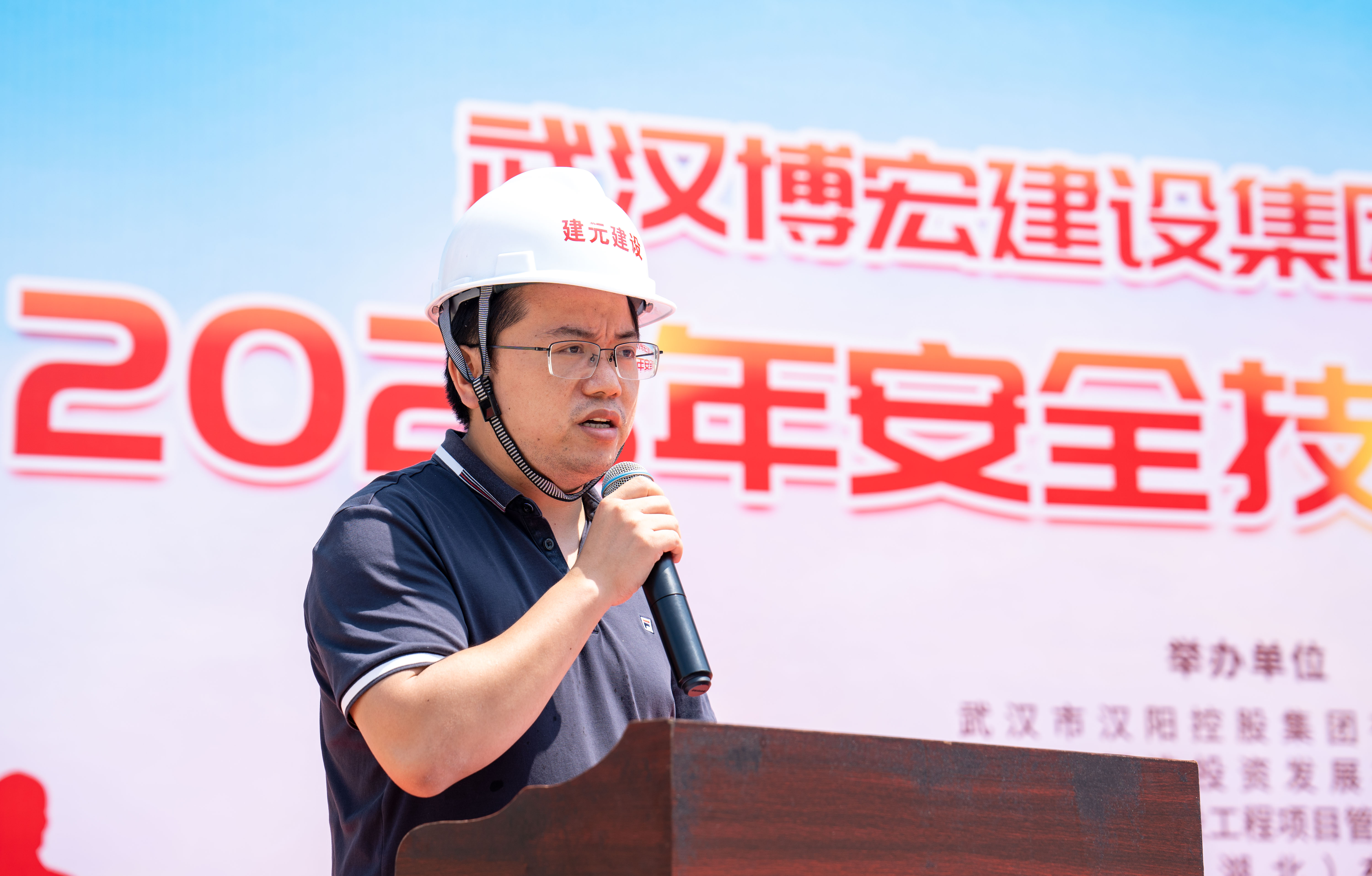 現(xiàn)場(chǎng),武漢漢陽(yáng)造投資發(fā)展有限公司工程部部長(zhǎng)呂飛翔、武漢市建元建設(shè)工程項(xiàng)目管理有限公司房建部副部長(zhǎng)劉志勇分別作出致辭及講話,表達(dá)了對(duì)本次大賽的希冀與祝福,號(hào)召參建各方攜手共進(jìn)、合作共贏,認(rèn)清安全管理的嚴(yán)峻形勢(shì),振奮精神、自我加壓,消除安全漏洞,抓好安全工作,守好安全底線,開(kāi)創(chuàng)項(xiàng)目安全管控新局面。