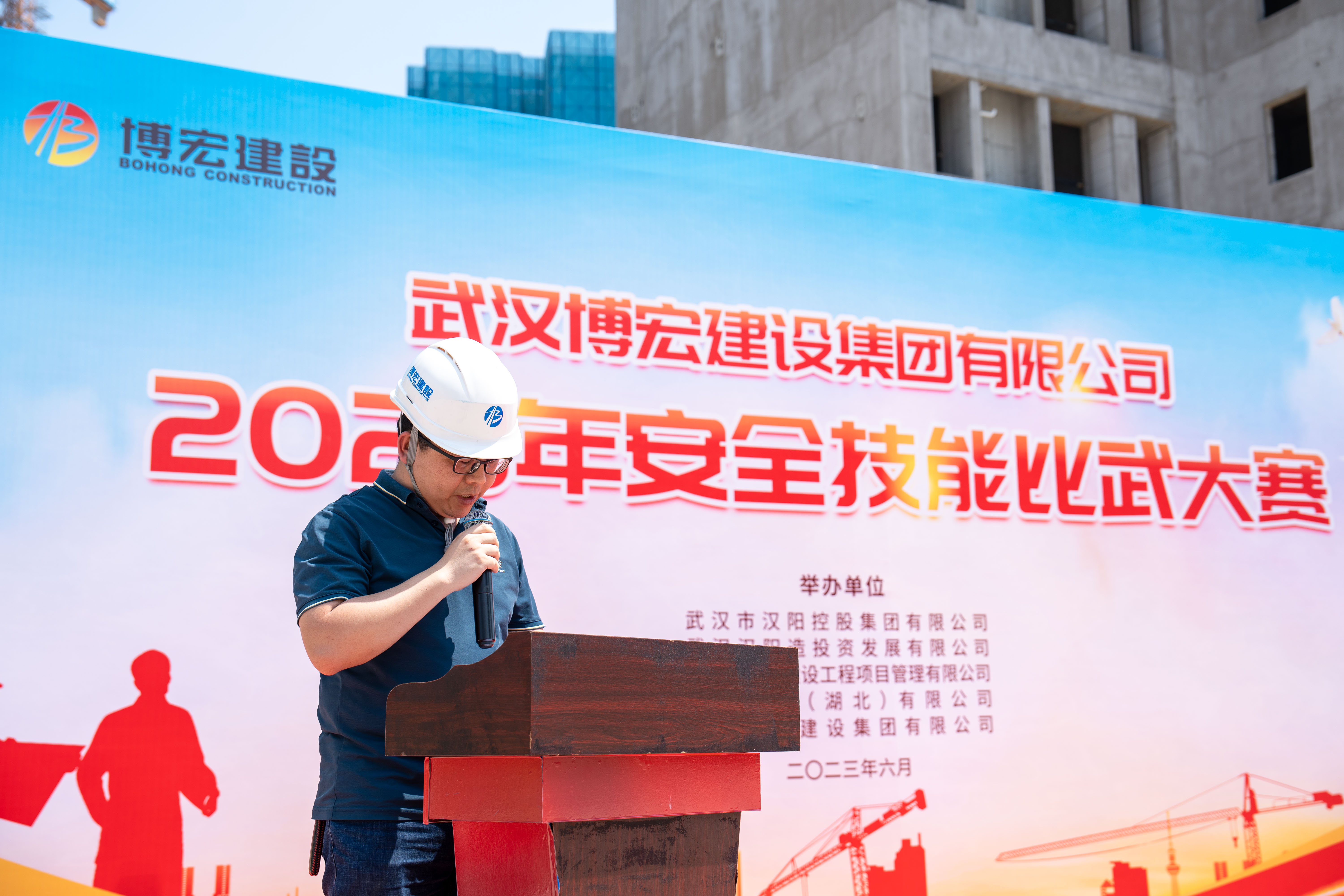 6月9日下午,博宏建設(shè)集團(tuán)2023年安全技能比武大賽在米糧村還建房A地塊順利舉行。武漢市漢陽(yáng)控股集團(tuán)有限公司項(xiàng)目管理部黃圓,武漢漢陽(yáng)造投資發(fā)展有限公司工程部部長(zhǎng)呂飛翔,武漢市建元建設(shè)工程項(xiàng)目管理有限公司房建部副部長(zhǎng)劉志勇,南方咨詢(湖北)有限公司項(xiàng)目總監(jiān)許文真等參建單位相關(guān)領(lǐng)導(dǎo),博宏建設(shè)集團(tuán)總經(jīng)理助理羅平照、總經(jīng)理助理李暉等相關(guān)領(lǐng)導(dǎo)出席了本次啟動(dòng)儀式,各職能部門(mén)、8支參賽隊(duì)伍共50余人參加活動(dòng)。