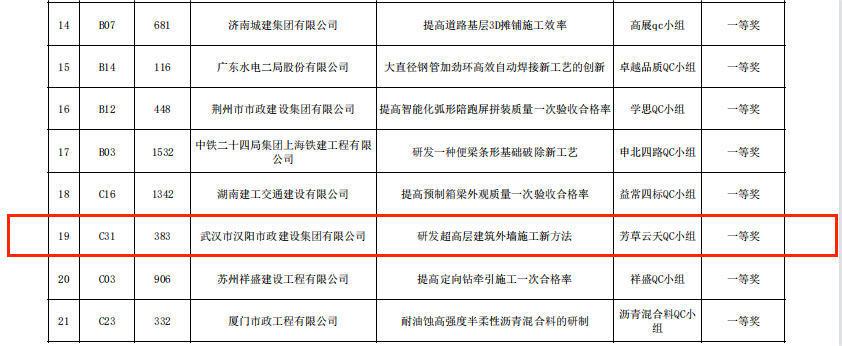 近日,中國建筑業(yè)協會、中國施工企業(yè)管理協會與中國市政工程協會工程建設質量管理小組活動成果大賽獲獎名單陸續(xù)出爐,基于中南科研設計中心建設項目現場情況總結出的《施工電梯基礎支撐體系的研制》、《提高鋼結構對接焊縫驗收合格率》與《研發(fā)超高層建筑外墻施工新方法》3項QC成果榮獲國家級獎項。