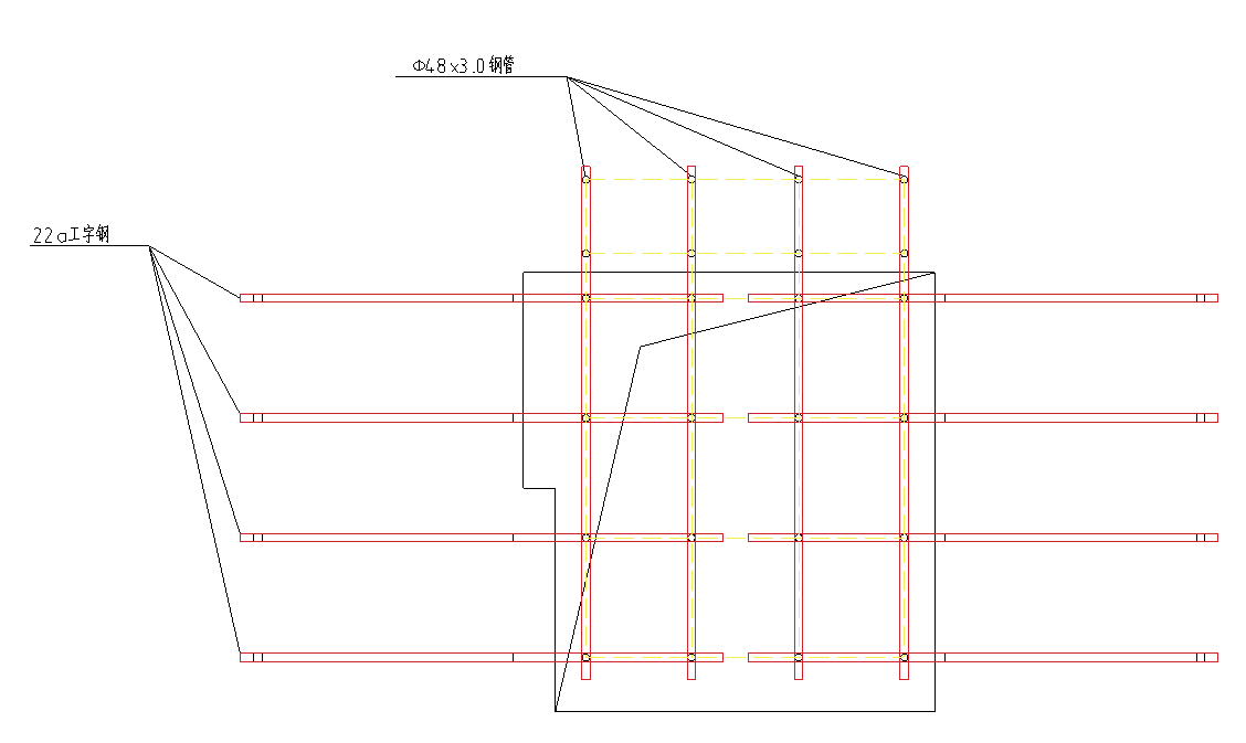 該技術(shù)通過采用兩道16#工字鋼懸挑(一道布置在屋面層,一道布置在屋面層-2層),分別設(shè)置下?lián)渭吧侠姆绞酱钤O(shè)支撐平臺,再利用此平臺為基礎(chǔ)搭設(shè)支撐架和外腳手架,既用于結(jié)構(gòu)施工,同時兼作安全防護,有效降低了操作人員的安全風(fēng)險,對結(jié)構(gòu)安全性有較大保障。