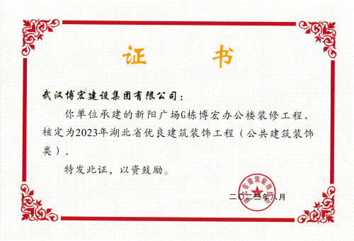 近日,湖北省建筑裝飾協(xié)會(huì)公布了2023年湖北省優(yōu)良建筑裝飾工程名單,由博宏建設(shè)集團(tuán)承建的新陽廣場(chǎng)G棟辦公樓裝修工程項(xiàng)目、漢陽區(qū)西部政務(wù)服務(wù)中心、國博D9等4所幼兒園整體改造項(xiàng)目(EPC) 獲評(píng)“2023年湖北省優(yōu)良建筑裝飾工程(公共建筑裝飾類)”榮譽(yù)稱號(hào)。