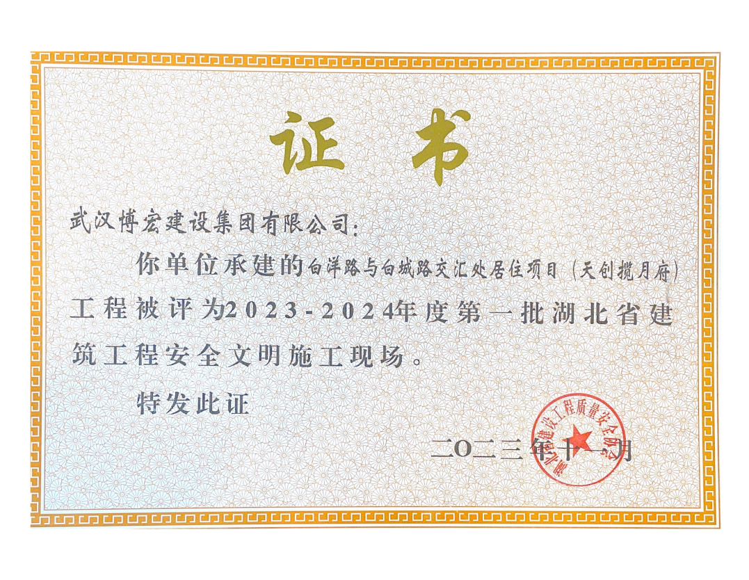 近日,湖北省建設(shè)工程質(zhì)量安全協(xié)會(huì)公布了2023-2024年度第一批湖北省建筑工程安全文明施工現(xiàn)場(chǎng)名單,由博宏建設(shè)集團(tuán)承建的隨州市中心看守所辦公區(qū)、監(jiān)區(qū)及配電房;黃金口產(chǎn)業(yè)園商業(yè)設(shè)施、居住、公園綠地建設(shè)項(xiàng)目;新建工業(yè)項(xiàng)目(漢陽市政科研中心)(EPC)等8項(xiàng)工程獲評(píng)湖北省建筑工程安全文明施工現(xiàn)場(chǎng)。