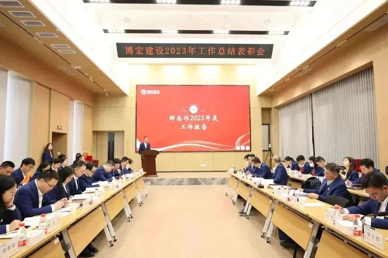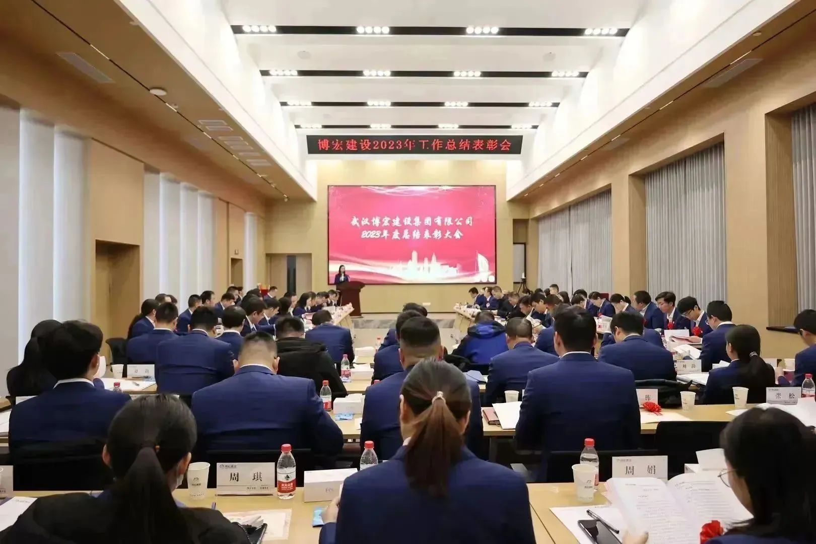1月26日-27日,博宏建設(shè)2023年工作總結(jié)暨2024年工作研討會在公司31樓會議室隆重召開。公司黨委班子、部門負(fù)責(zé)人、項(xiàng)目經(jīng)理和員工代表共84人參加會議。漢陽市政黨委書記、董事長嚴(yán)悌文受邀出席會議。會議由公司黨委副書記郭一清主持。