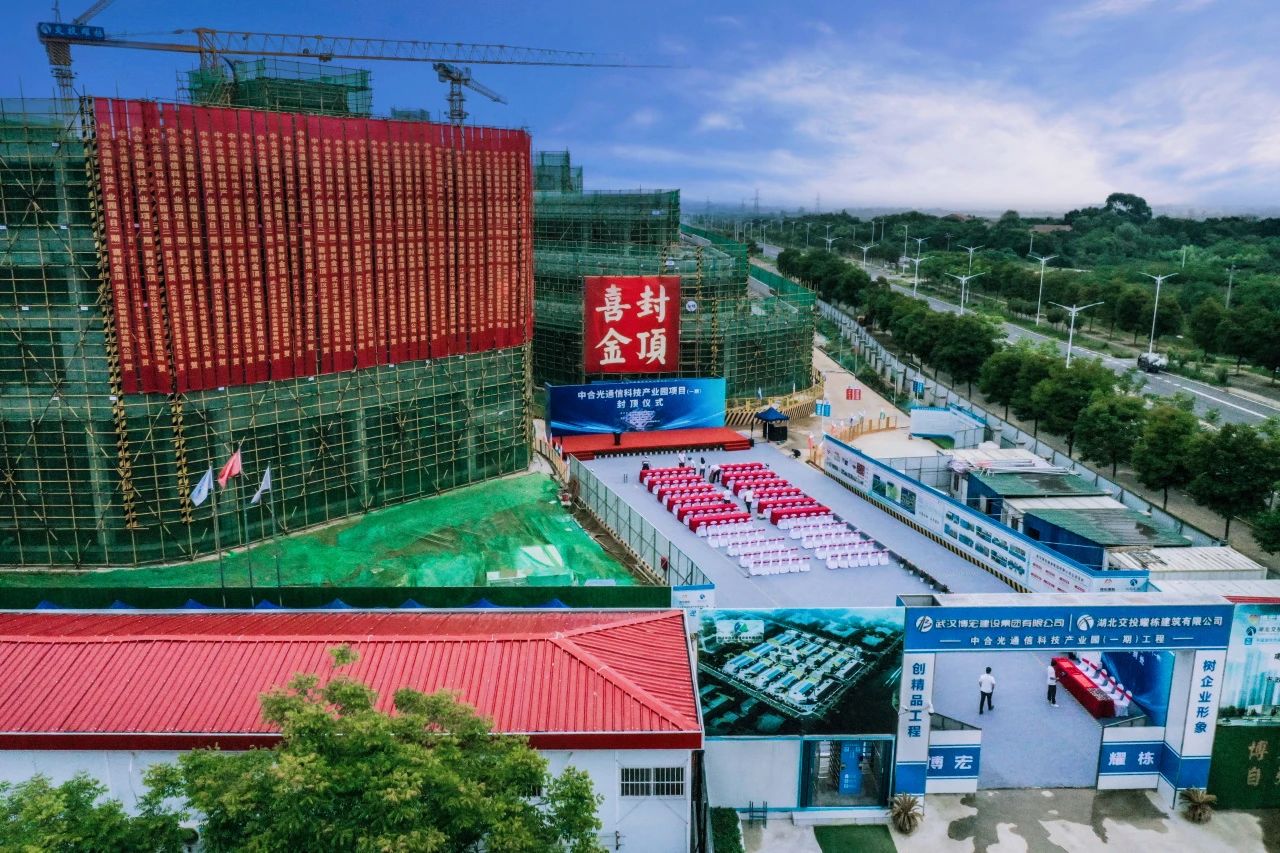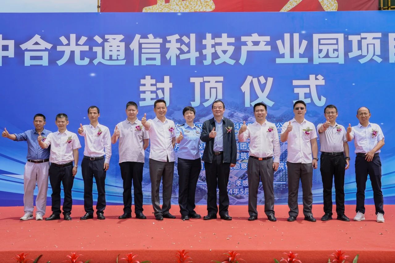 2024年5月9日上午,中合光通信科技產(chǎn)業(yè)園(一期)封頂儀式在項(xiàng)目現(xiàn)場隆重舉行。孝感市人大常委會(huì)副主任、臨空區(qū)工委書記邱顯春,孝感市臨空區(qū)工委委員、公安分局局長劉洋,武漢塔子湖集團(tuán)有限公司黨委書記葉永斌、董事長胡浩,武漢博宏建設(shè)集團(tuán)有限公司董事長鄒勇,武漢中合智能科技集團(tuán)有限公司董事長李劍出席封頂儀式,共同見證項(xiàng)目封頂。湖北交投耀棟建筑有限公司等參建單位相關(guān)領(lǐng)導(dǎo)參加本次儀式。